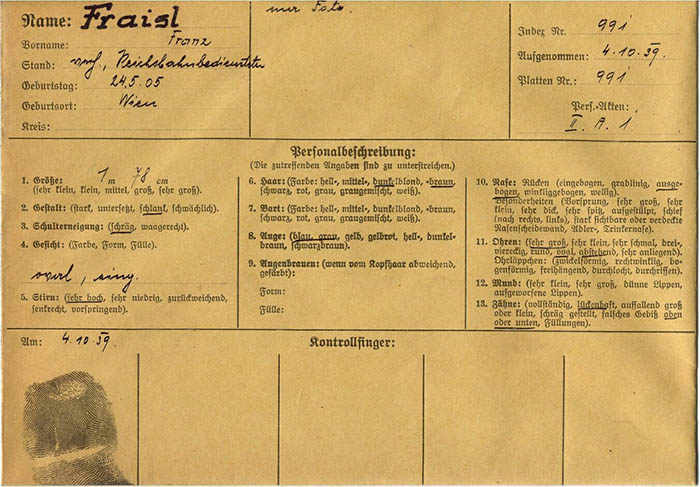 Der Eisenbahner Franz Fraisl wurde am 4. 10. 1939 wegen kommunistischer Betätigung festgenommen und am 28. 10. 1940 wegen "Vorbereitung zum Hochverrat" zu 1 Jahr Gefängnis verurteilt. Vom 8. 2. 1941 bis zur Befreiung durch die US-Truppen war er im KZ Dachau inhaftiert.