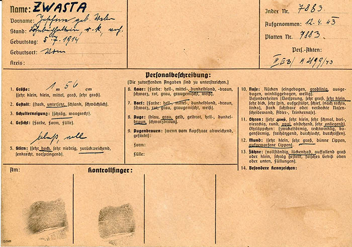 Ihr Mann Rudolf Zwasta (geb. 22. 2. 1910), der einer Nachrichtenorganisation des polnischen Widerstands angehörte, wurde im April 1945 im Zuchthaus Stein a. d. Donau erschossen.