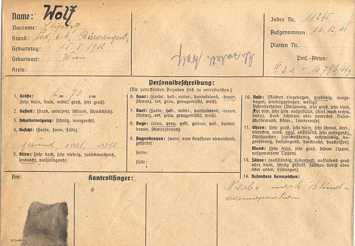 Die Büroangestellte Elisabeth Wolf war gemeinsam mit ihrer Mutter Barbara Wolf (geb. 19. 3. 1889) an der Unterstützung von Fahnenflüchtigen beteiligt. Beide wurden im Dezember 1944 festgenommen und blieben bis 5. 4. 1945 in Haft.