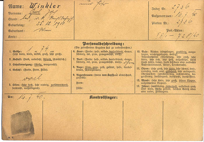 Der Zugschaffner Karl Winkler wurde wegen "Rundfunkverbrechens" (Abhören ausländischer Rundfunksender) im Juli 1940 festgenommen und am 26. 10. 1940 zu 1 Jahr 6 Monaten Zuchthaus verurteilt. 1942 wurde er aus der Haft entlassen und zu einer Strafeinheit der Deutschen Wehrmacht eingezogen.
