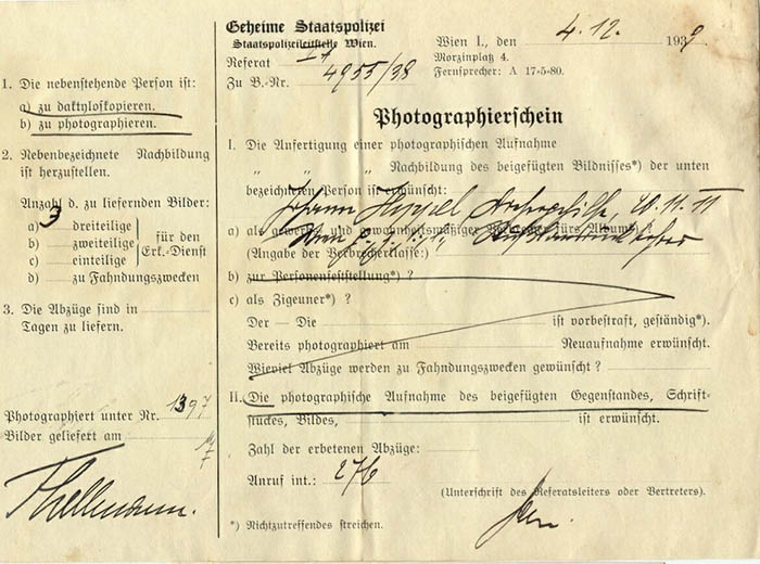 Der Drehergehilfe Johann Hippel wurde am 4. 12. 1939 mit dem Vermerk "Russlandrückkehrer" von der Gestapo Wien erkennungsdienstlich erfasst.
